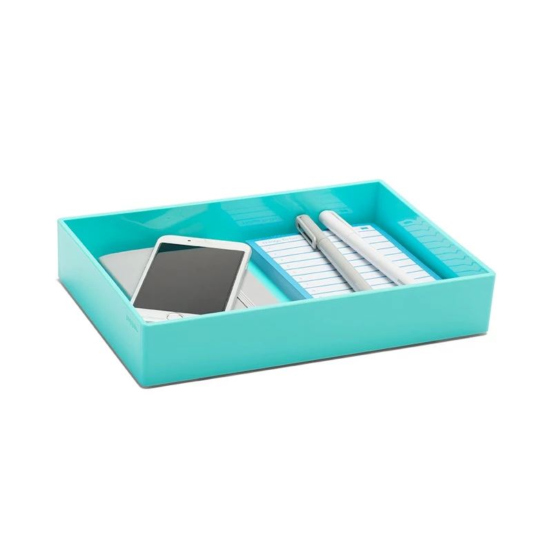 Our Medium Accessory Tray provides the extra space we all crave. Designed to stack and match perfectly with our Letter Tray, Pen Cup, and Bits + Bobs Tray, think of it as the cornerstone of the Poppin desktop collection. There’s no need to stop at storing Pens and Paperclips: use it to stash nail polish in the bathroom, baubles in the bedroom, or keep oils off your kitchen counter.
