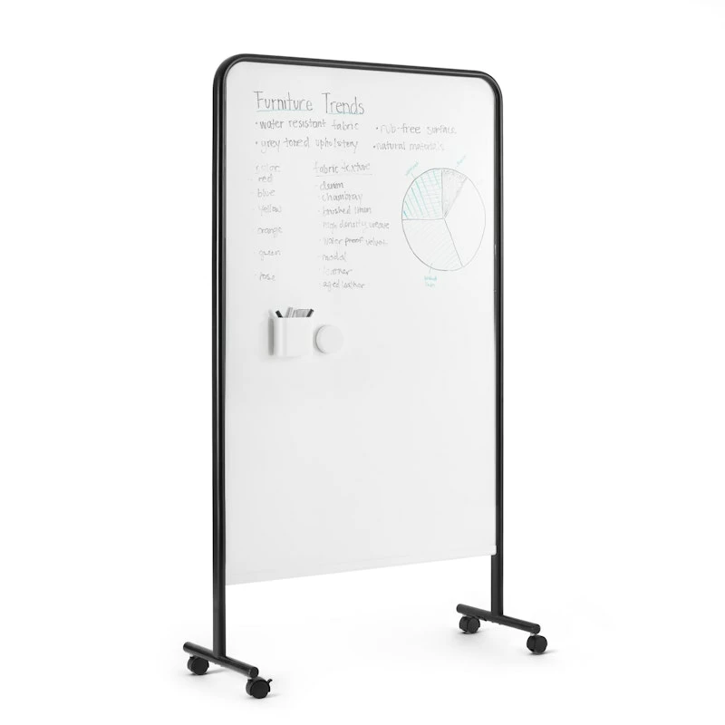 Our Goal Dry Erase Board is a double-sided double whammy of magnetic and writeable. The included casters make it simple to spin into standup meetings to keep your team working towards a shared goal.