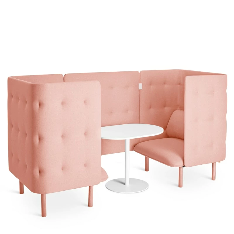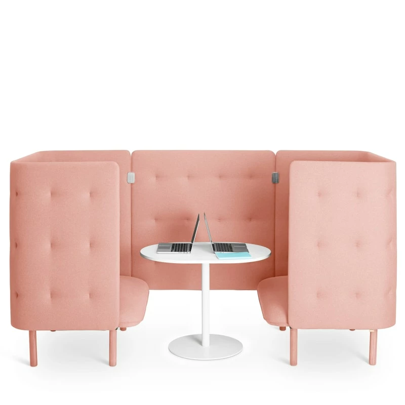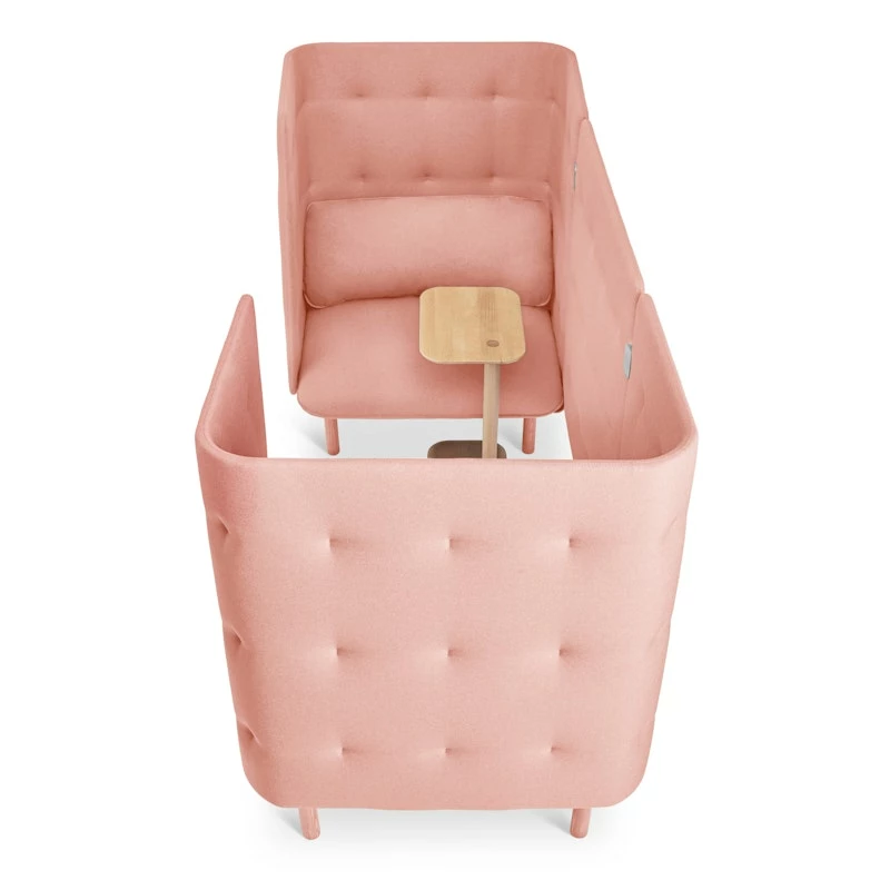 Designed to block distractions, encourage uninterrupted focus, and provide space for two-person meetings, the QT Privacy Lounge Chair Booth is the open office oasis. Soft padded panels mitigate noise to create a semi-private meeting area in any communal space. Simply pull up a Tucker Lounge Table or Spot Side Table and voila! A mini conference room without even calling a contractor.