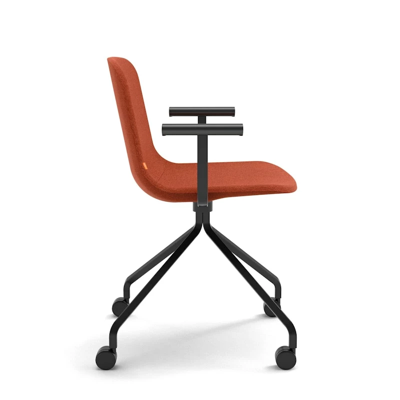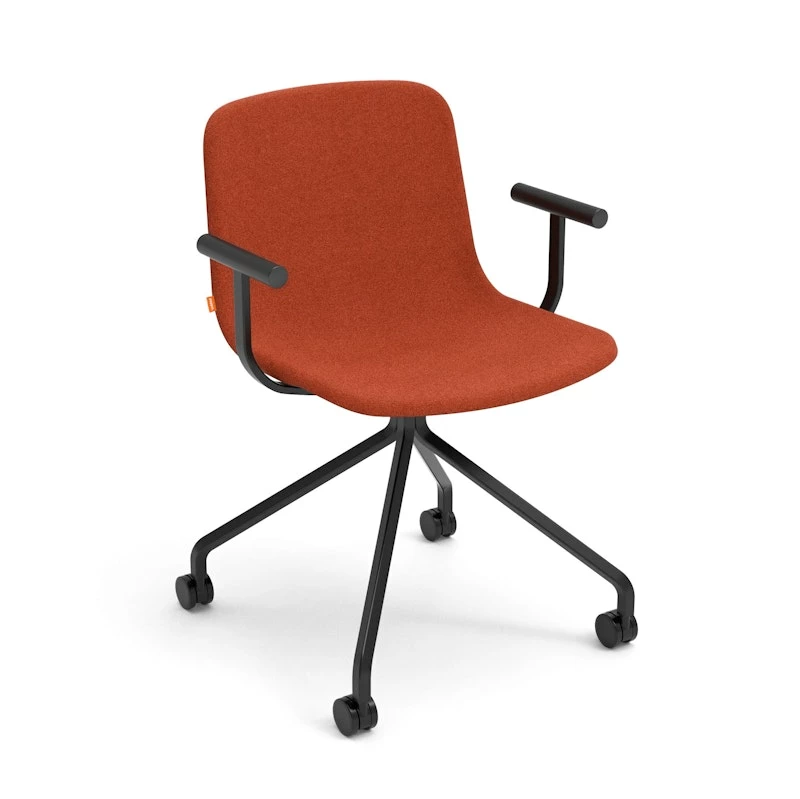 Our Key Meeting Chair is the key to affordable conference seating. Ideal for meeting spaces, break room cafés, and extra seating absolutely anywhere, it’s available in multiple colors to match your brand or bring a pop of color to conferencing. The durable molded plastic seat is fully upholstered in Medley fabric and sits on a sturdy steel frame with casters.