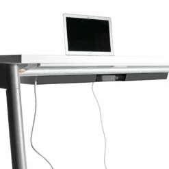 - Attaches to the underside of the desktop