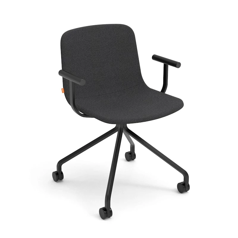 Our Key Meeting Chair is the key to affordable conference seating. Ideal for meeting spaces, break room cafés, and extra seating absolutely anywhere, it’s available in multiple colors to match your brand or bring a pop of color to conferencing. The durable molded plastic seat is fully upholstered in Medley fabric and sits on a sturdy steel frame with casters.