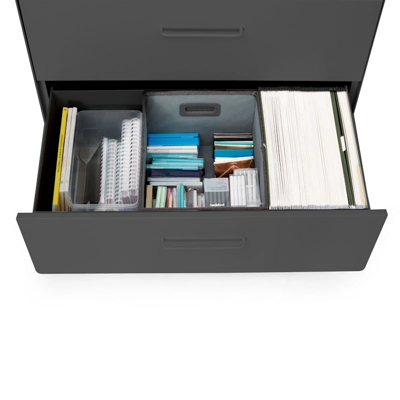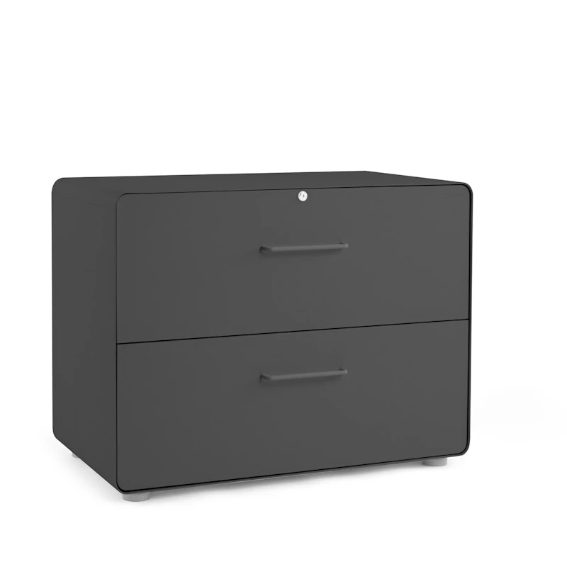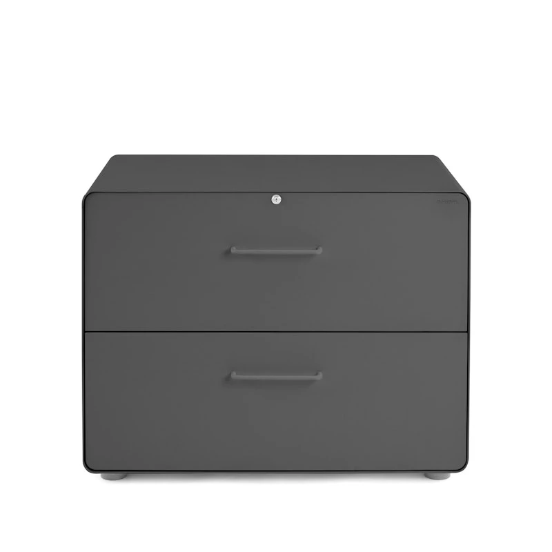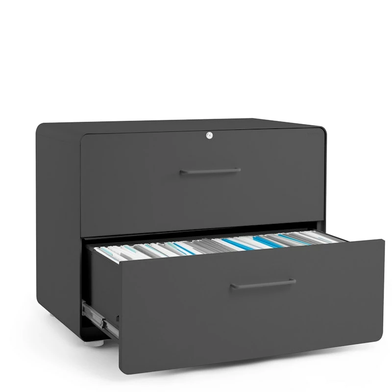 The lateral format of our best-selling Stow File Cabinet is ideal for shared or private storage space at the end of a desk row. Powder-coated steel construction with matching painted steel interior keeps documents and doodads super safe. One lock secures both drawers, giving the entire cabinet the privacy it deserves.