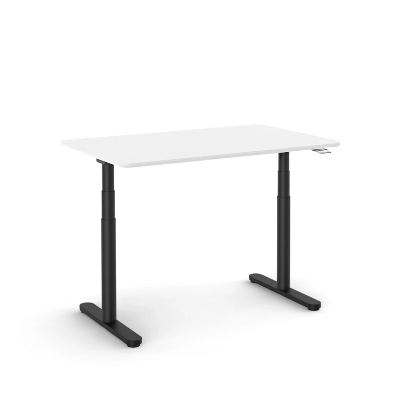 Raise Adjustable Height Single Desk, White, 48", Black Legs