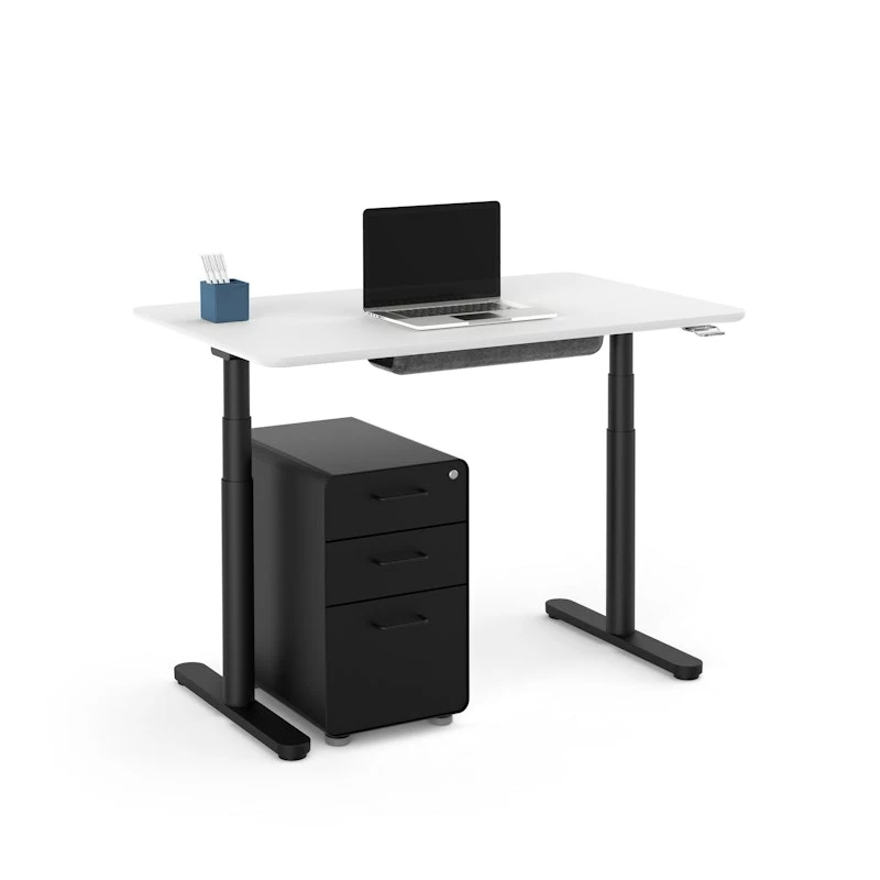 • With electric legs traveling at 1.4″ per second at a noise level below 50dB, you can quickly and quietly move from sitting to standing