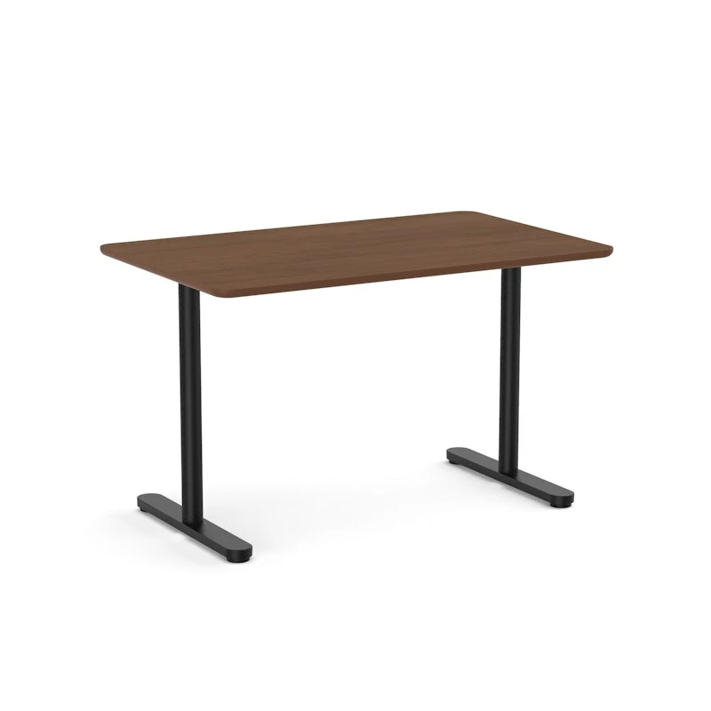 Raise Fixed Height Single Desk, Walnut, 48", Black Legs
