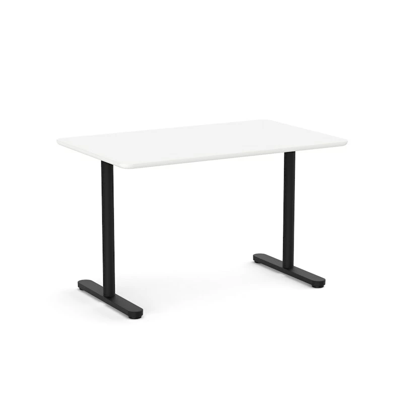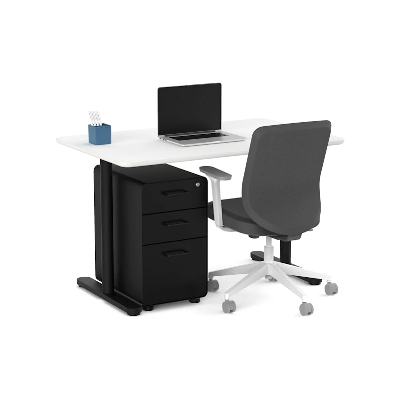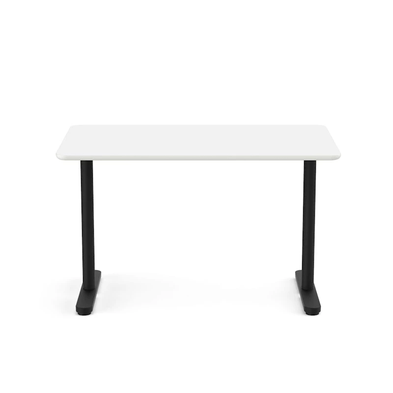 Raise Fixed Height Single Desk, White, 48", Black Legs