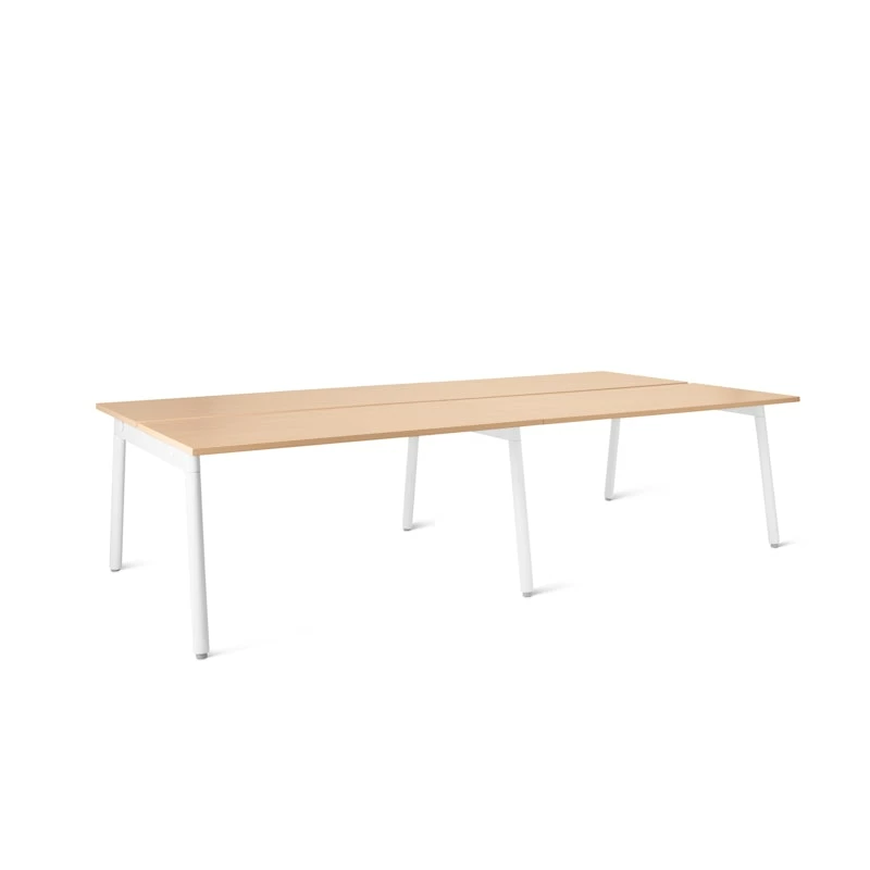 Series A Double Desk For 4, Natural Oak, 47", White Legs