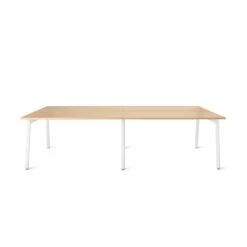 Series A Double Desk For 6, Natural Oak, 47″, White Legs