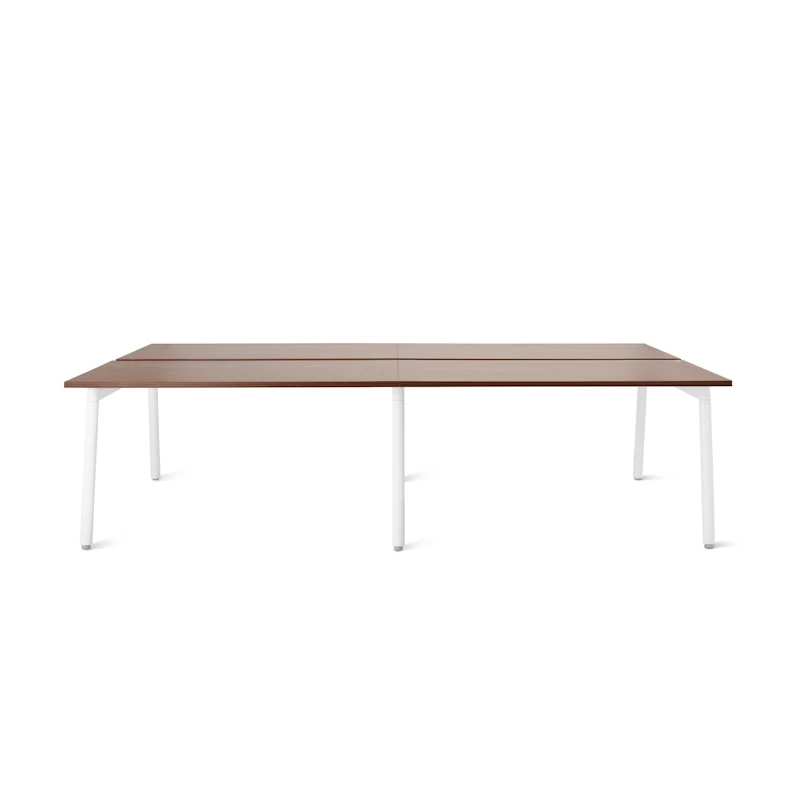Series A Double Desk For 4, Walnut, 47", White Legs