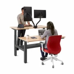 Series L Adjustable Height Double Desk For 2, Natural Oak, 47″, Charcoal Legs