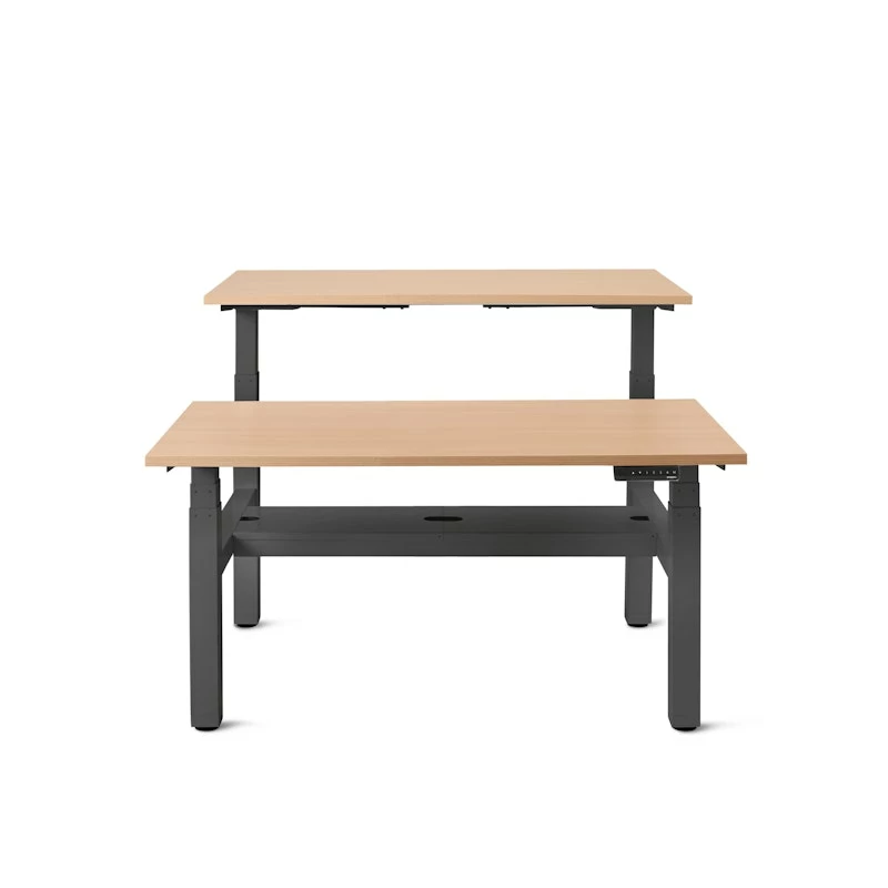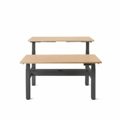 Series L Adjustable Height Double Desk For 2, Natural Oak, 47″, Charcoal Legs