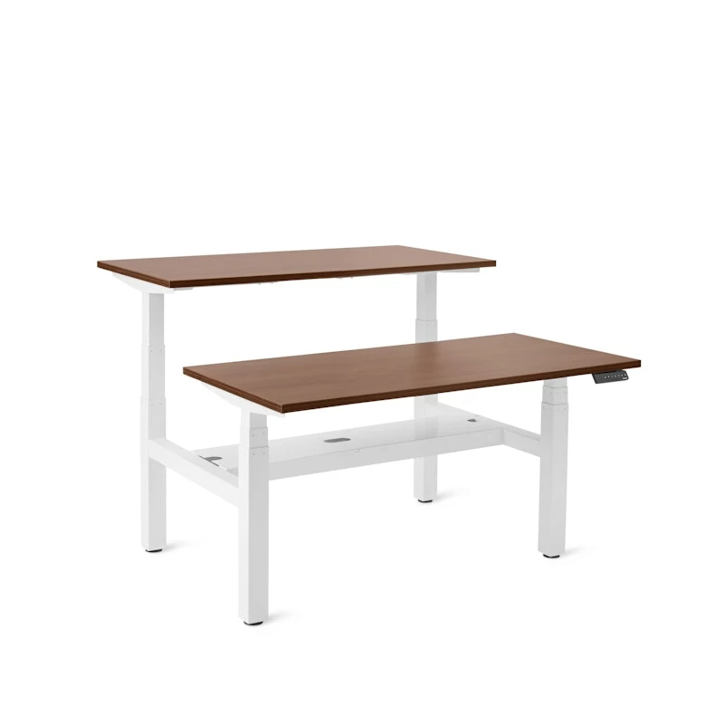 Take a stand for the health of your team! The Series L Adjustable Height Standing Double Desk is the Sit/Stand solution for the modern workspace. Designed for ideal ergonomic work, it allows you the flexibility to transition from sitting to standing in seconds. With thoughtful details and modern design, it fits seamlessly into the rest of the Poppin Furniture collection…and it also stands on its own.
