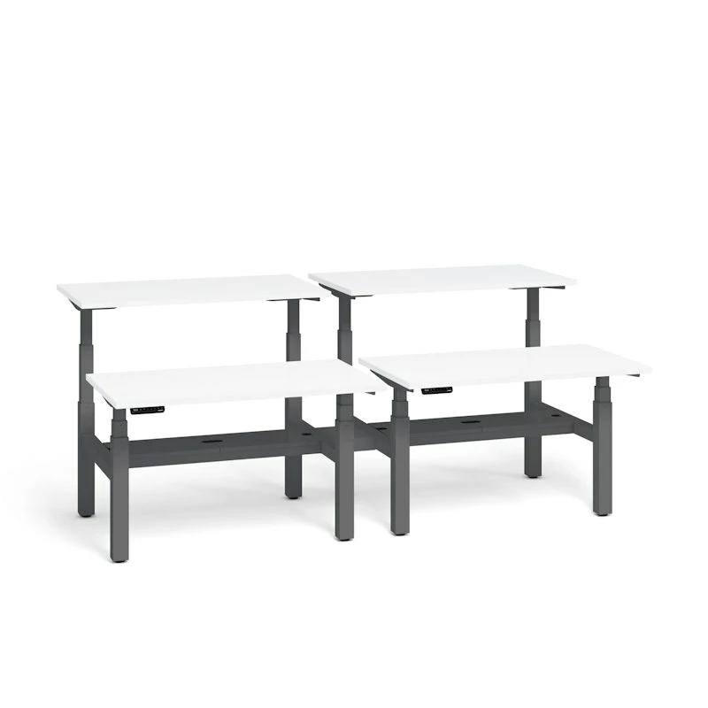 Series L Adjustable Height Double Desk For 4, White, 47″, Charcoal Legs