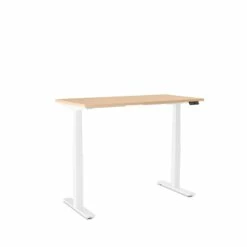 Series L Adjustable Height Single Desk, Natural Oak, 47″, White Legs
