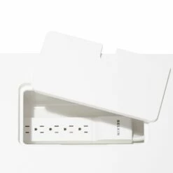 - Built-in tray with cover lets you keep unsightly cords and cables off your desktop