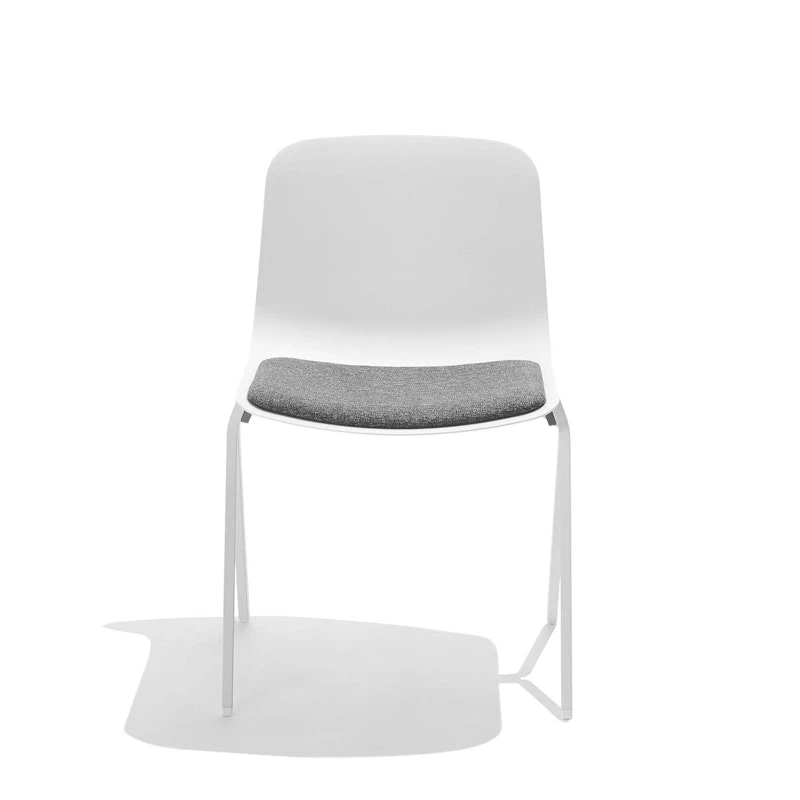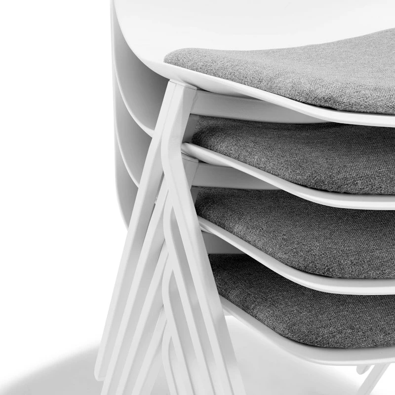Our Key Side Chair is the key to casual collaboration spaces, extra seating, and break room cafés. It stacks up to eight chairs high so you can pull them out when you need them and hide them away when you don’t. The durable molded plastic seat, permanently affixed seat pad, and steel frame are designed to be stacked, sat on, and re-stacked over and over again.