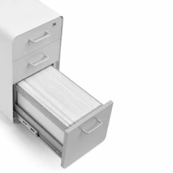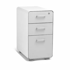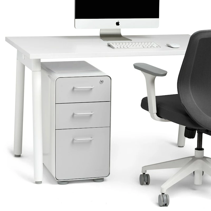 Our Slim Stow File Cabinet is designed for use with 47″ desks, providing plenty of room for both your docs and your knees. Powder-coated steel construction with matching painted steel interior keeps your stuff super safe. One lock secures all three drawers, giving the entire cabinet the privacy it deserves.