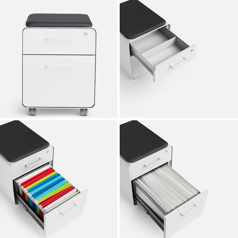 Our best-selling Stow File Cabinet now comes in a mini size. Ideal for both storage and spare seating, the powder-coated steel construction can handle all your needs. The included pad and locking casters make it a snap to sit, stow, and go!