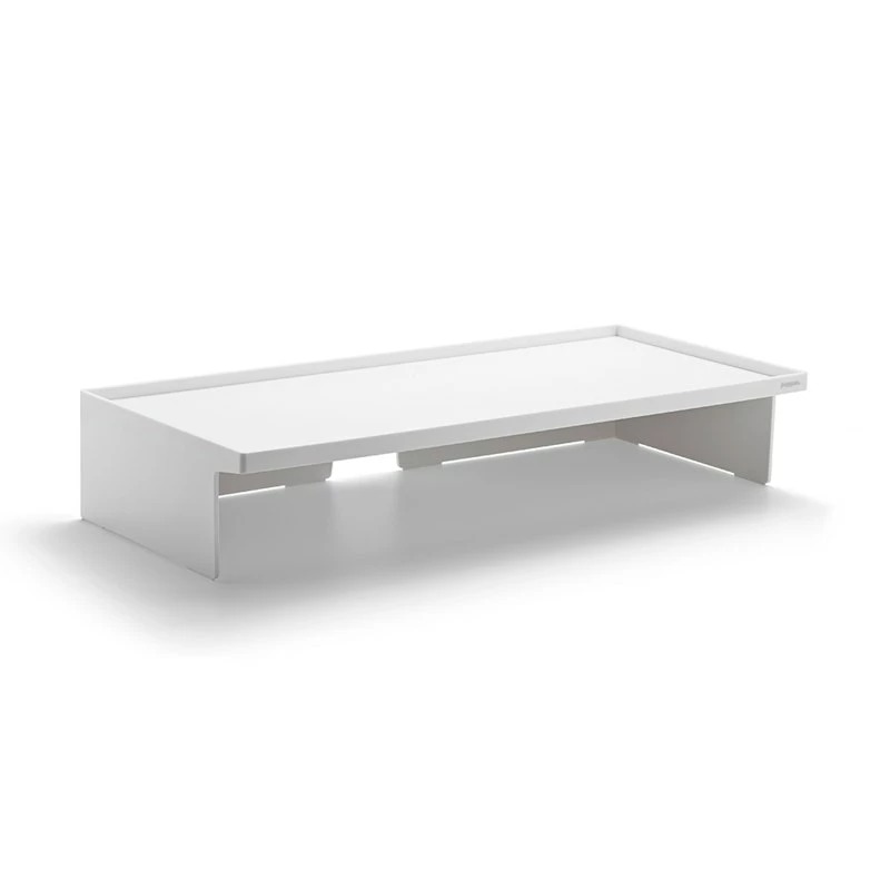 Our Monitor Riser takes your desktop to new heights. It not only kicks your computer screen up a notch, it also doubles as an all-purpose shelf, turning your desk into a duplex. Designed to fit with our Accessory, Letter, and Slim Trays, you can mix, match, and stack to bring your desk to a whole new level. A cable cutout in the back keeps cords out of your way, keeping you free from entanglements.