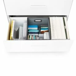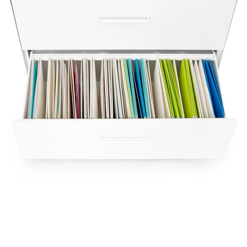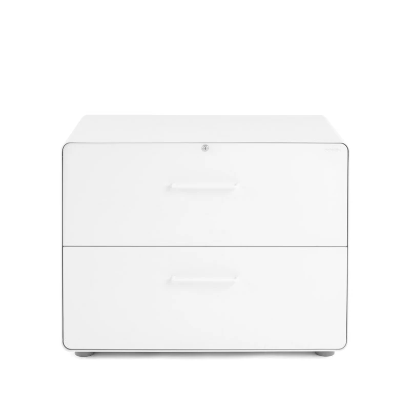 The lateral format of our best-selling Stow File Cabinet is ideal for shared or private storage space at the end of a desk row. Powder-coated steel construction with matching painted steel interior keeps documents and doodads super safe. One lock secures both drawers, giving the entire cabinet the privacy it deserves.