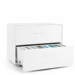- Stow Lateral File Cabinet with durable powder-coated steel construction stands up to movers and shakers