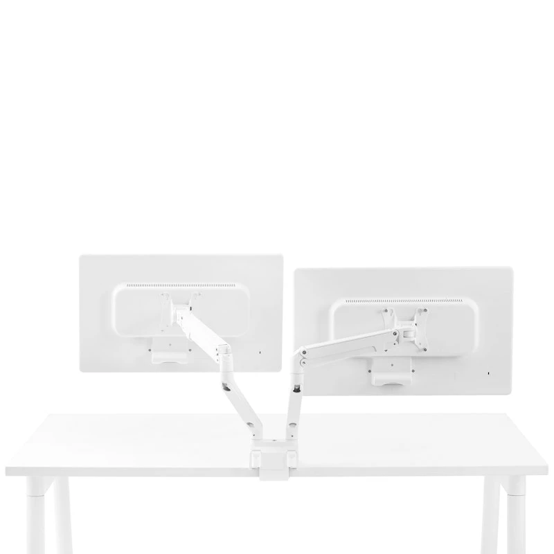 - The gas spring hovering system makes it simple to adjust your monitor height on both arms